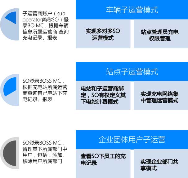多变收费策略(交直流、用户企业分组、时间段、充电事务等等),促成多个运营合作模式